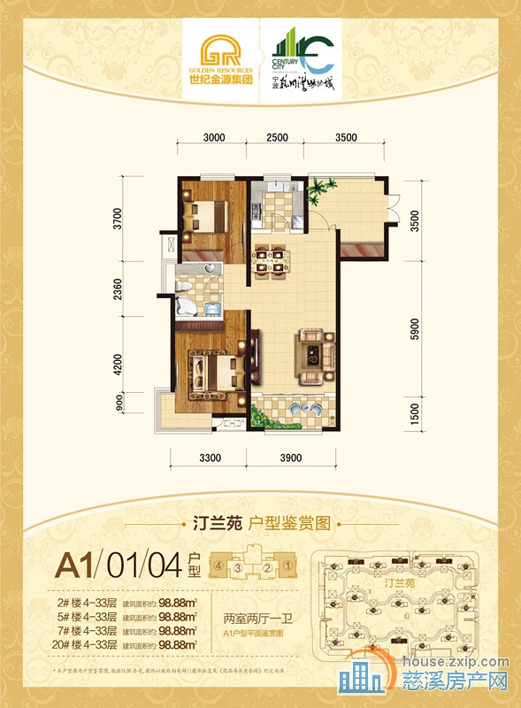 汀兰苑约100.88㎡两室两厅两卫