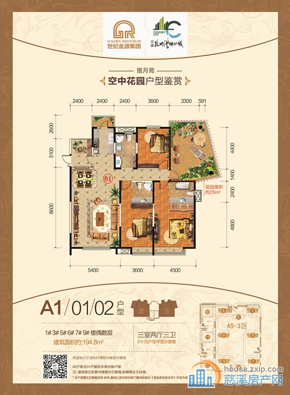 约194.8㎡三室两厅三卫一花园1