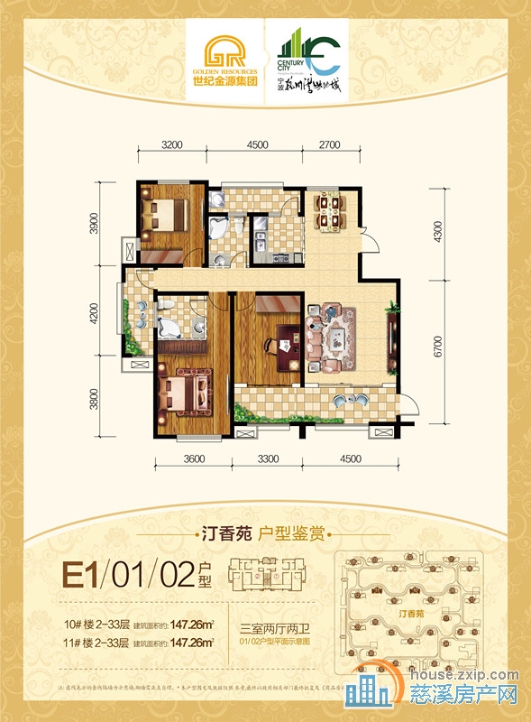 汀香苑约147.26㎡三室两厅两卫