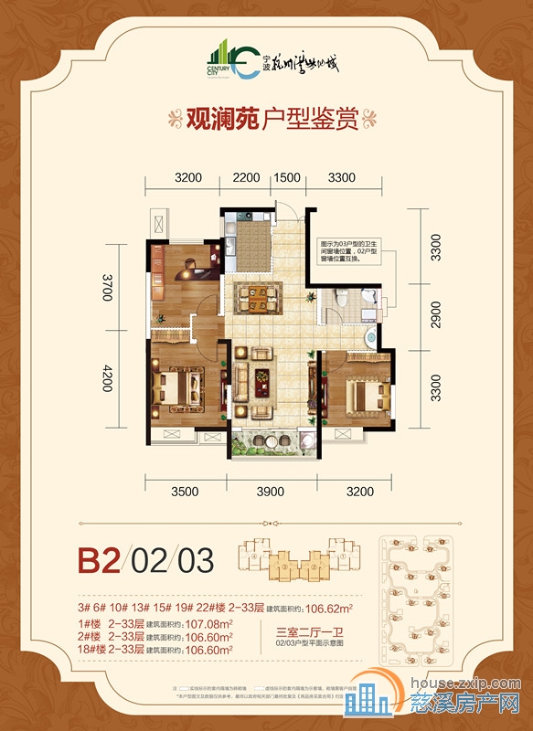 B8户型三室两厅一卫3