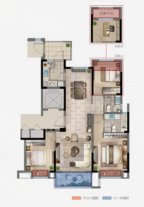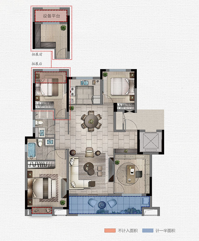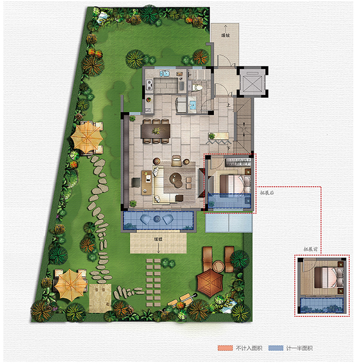 叠墅上叠 露台层