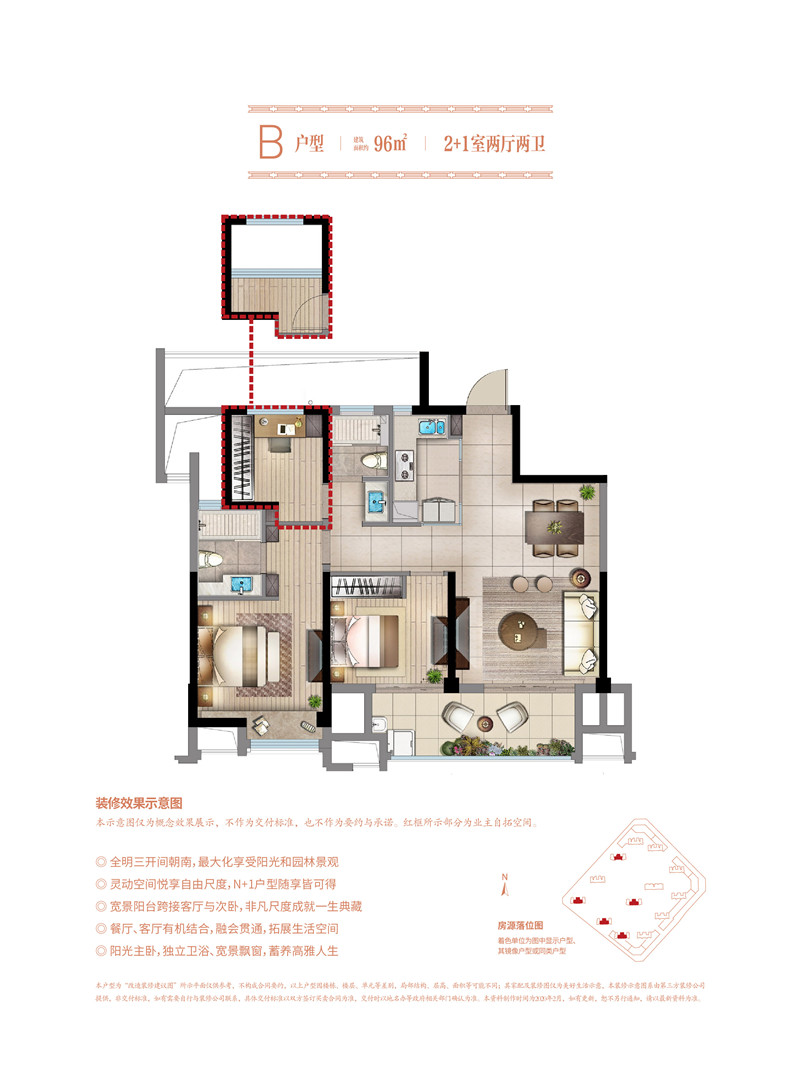 建面约96㎡户型