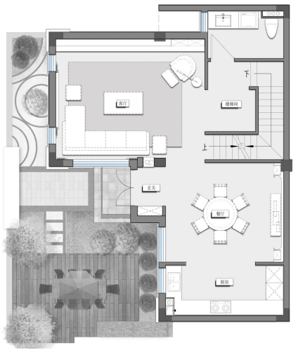 建面约220㎡合院露台层