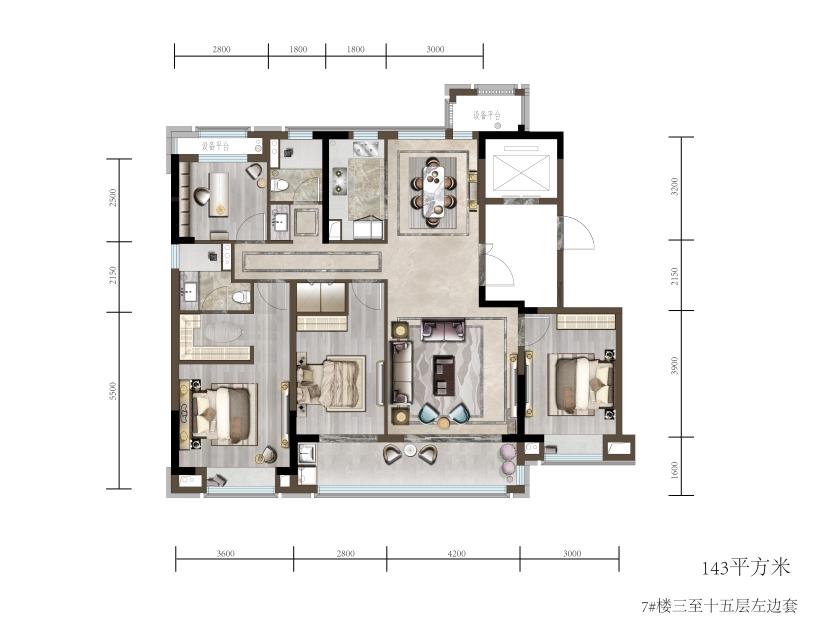 建面约144㎡户型