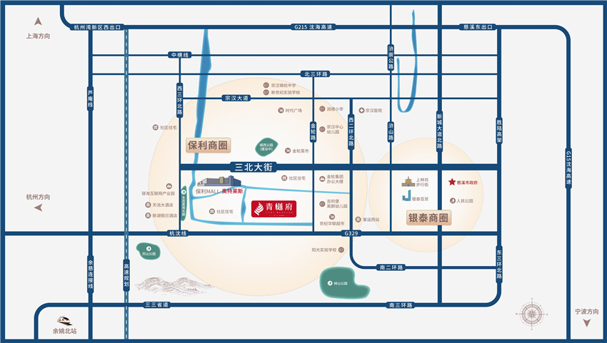 - 项目位置慈溪三北西大街与金轮南路交叉口往南约300米(保利mall旁)