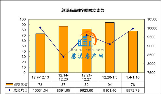 上周(1.4-1.10)成交各类房源(含住宅、公寓、商铺、写字楼和车库)共计194套,成交均价9431.17元/㎡,成交面积17653.62方。环比上上周成交量下降0.51%,成交均价上升6.15%,成交面积下降17.67%。
