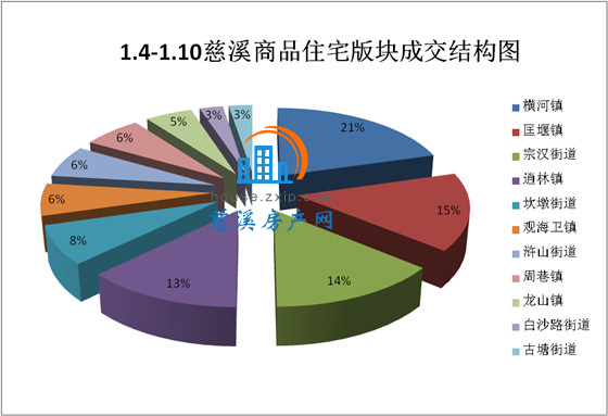 慈溪商品住宅(含别墅)各版块成交情况中,城区版块(浒山街道、古塘街道、白沙路街道、宗汉街道、坎墩街道)共成交26套,成交均价9817.65元/㎡。排名前三版块:横河镇备案16套,占上周商品住宅成交总量21%;匡堰镇备案12套,占上周商品住宅成交总量的15%;宗汉街道备案11套,占上周商品住宅成交总量14%