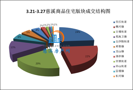 慈溪商品住宅(含别墅)各版块成交情况中,城区版块(浒山街道、古塘街道、白沙路街道、宗汉街道、坎墩街道)共成交71套,成交均价9498.86元/㎡。排名前三版块:宗汉街道备案33套,占上周商品住宅成交总量24%;横河镇备案31套,占上周商品住宅成交总量的22%;古塘街道各备案27套,占上周商品住宅成交总量20%。
