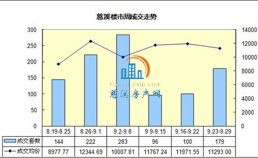 慈溪上周(9.23-9.29)成交各类房源(含住宅、公寓、商铺、写字楼和车库)共计179套,成交均价11293元/㎡,环比上上周成交量近翻倍增长。