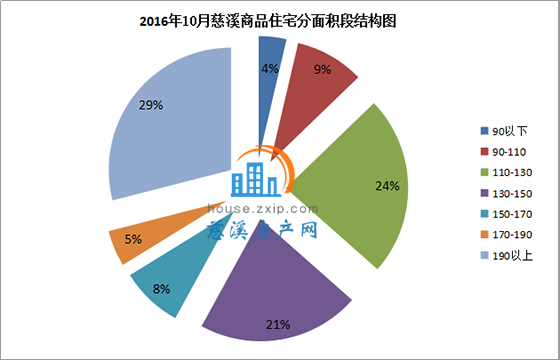 10月慈溪商品住宅按面积段成交中,190㎡以上面积段产品成交127套,成交均价8093.22元/㎡,占总成交套数的29%,销量排名第一;110-130㎡面积段产品成交104套,成交均价7058.34元/㎡,占总成交套数的24%,销量排名第二;130-150㎡以上面积段产品成交94套,成交均价7266.53元/㎡,占总成交套数的21%,销量排名第三。