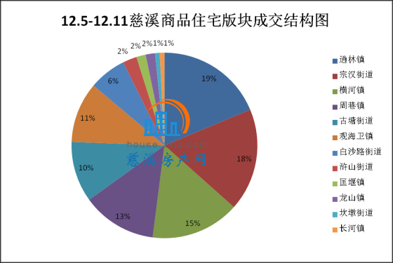 慈溪商品住宅(含别墅)各版块成交情况中,城区版块(浒山街道、古塘街道、白沙路街道、宗汉街道、坎墩街道)共成交47套,成交均价11573.33元/㎡。排名前三版块逍林镇备案23套,占上周商品住宅成交总量的19%;宗汉街道备案22套,占上周商品住宅成交总量的18%;横河镇备案19套,占上周商品住宅成交总量的15%。