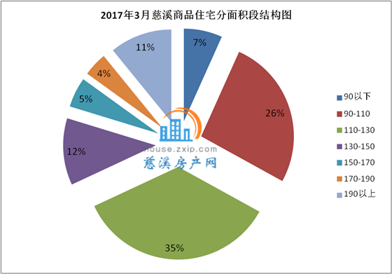 3月慈溪商品住宅按面积段成交中,110-130㎡面积段产品成交261套,成交均价7854.58元/㎡,占总成交套数的35%,销量排名第一。90-110㎡面积段产品成交196套,成交均价7725.45元/㎡,占总成交套数的26%,销量排名第二;130-150㎡面积段产品成交87套,成交均价7784.81元/㎡,占总成交套数的12%,销量排名第三。