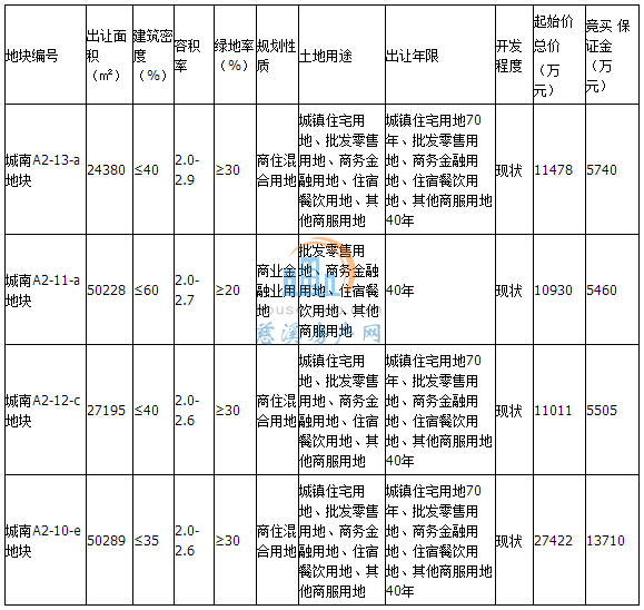 二、出让地块的规划指标、土地用途、出让年限、起始价总价及竞买保证金等