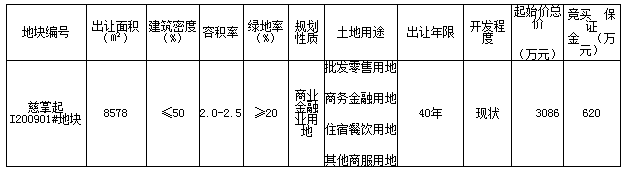 二、出让地块的规划指标、土地用途、出让年限、起始价总价及竞买保证金等如下: