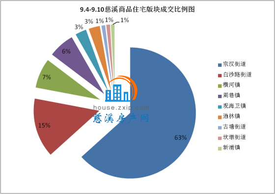 慈溪商品住宅(含别墅)各版块成交情况中,城区版块(浒山街道、古塘街道、白沙路街道、宗汉街道、坎墩街道)共成交87套,成交均价11552.90元/㎡。排名前三版块:宗汉街道备案69套,占上周商品住宅成交总量的63%;白沙路街道备案16套,占上周商品住宅成交总量的15%;横河镇备案8套,占上周商品住宅成交总量的7%