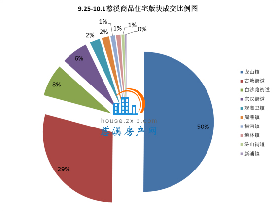 慈溪商品住宅(含别墅)各版块成交情况中,城区版块(浒山街道、古塘街道、白沙路街道、宗汉街道、坎墩街道)共成交127套,成交均价11553.70元/㎡。排名前三版块:龙山镇备案147套,占上周商品住宅成交总量的50%;古塘街道备案85套,占上周商品住宅成交总量的29%;白沙路街道备案22套,占上周商品住宅成交总量的8%。