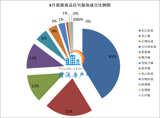 9月慈溪商品住宅版块成交中,城区楼盘(浒山街道、古塘街道、白沙路街道、坎墩街道、宗汉街道)成交480套,成交均价10981.35元/㎡。宗汉街道成交备案302套,占当月全市总成交量41%;龙山镇成交备案151套,占当月全市总成交量21%;古塘街道成交备案88套,占当月全市总成交量12%。