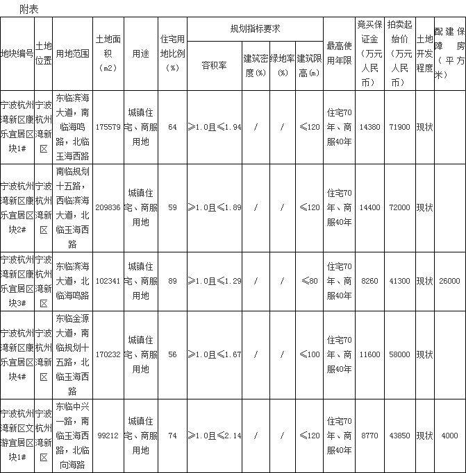 杭州湾多地块使用权拍卖出让公告