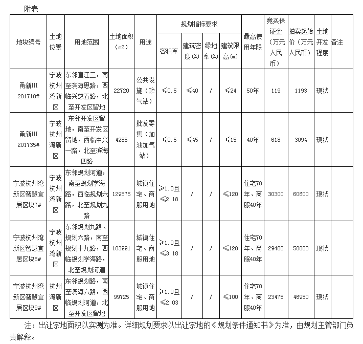 杭州湾新区5宗地块拍卖出让公告