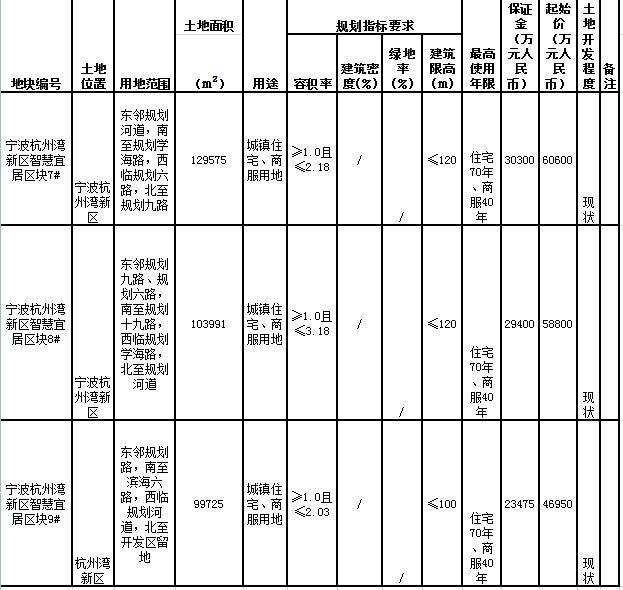 杭州湾地块土地拍卖出让公告