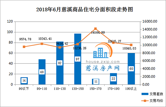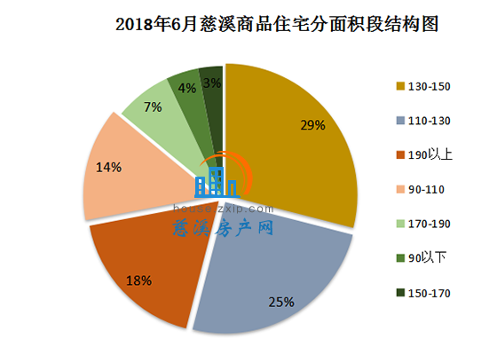 6月慈溪商品住宅按面积段成交中,130㎡-150㎡面积段产品成交97套,占总成交套数的29%,最受慈溪购房者欢迎;110㎡-130㎡面积段产品成交82套,占总成交套数的25%,销量排名第二;190㎡以上面积段产品成交60套,占总成交套数的18%,销量排名第三。