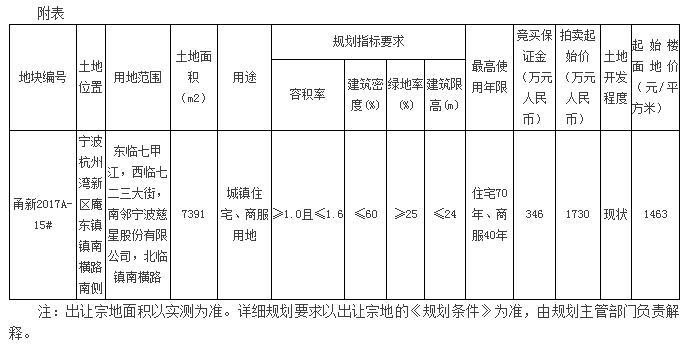 杭州湾新区地块拍卖出让公告