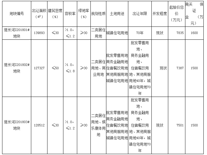 慈长河三宗地块使用权拍卖出让公告