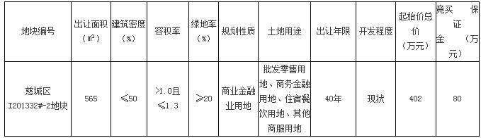 慈城区I201332#-2地块拍卖出让公告