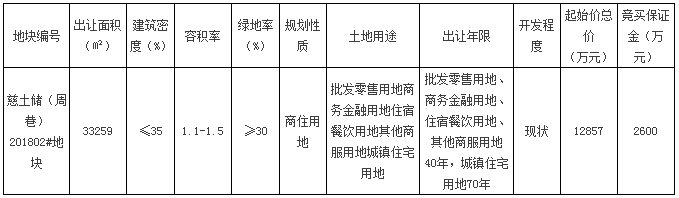 慈土储(周巷)201802#地块拍卖时间2018年10月9日上午10:00。