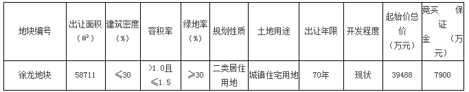 徐龙地块使用权拍卖出让公告
