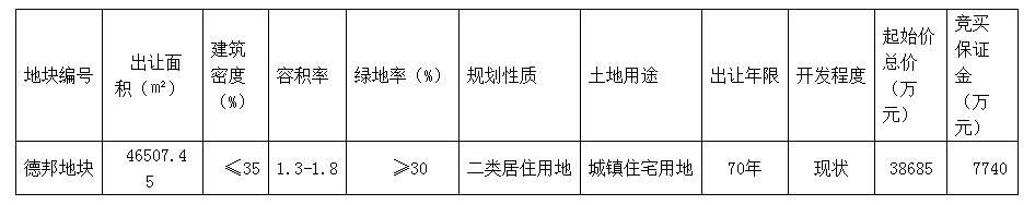 德邦地块拍卖出让公告