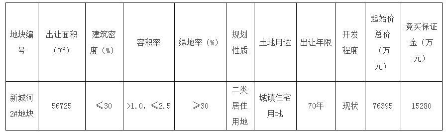 二、出让地块的规划指标、土地用途、出让年限、起始价总价及竞买保证金等如下: