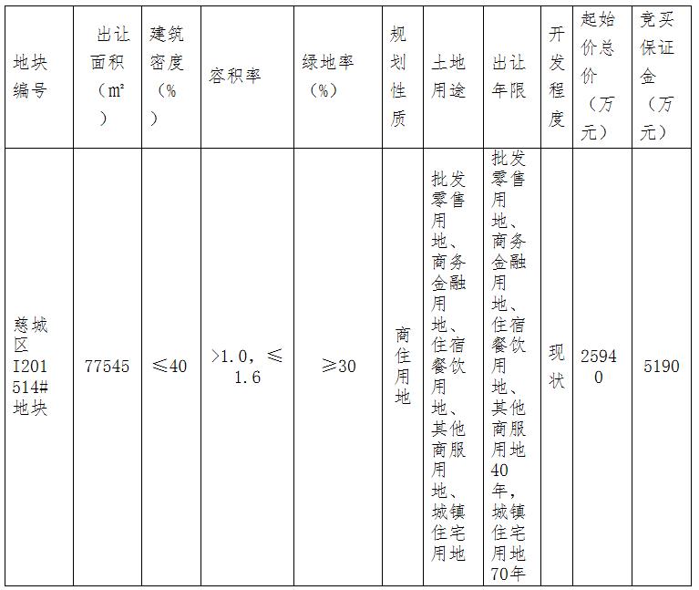 慈城区I201514#地块拍卖出让公告