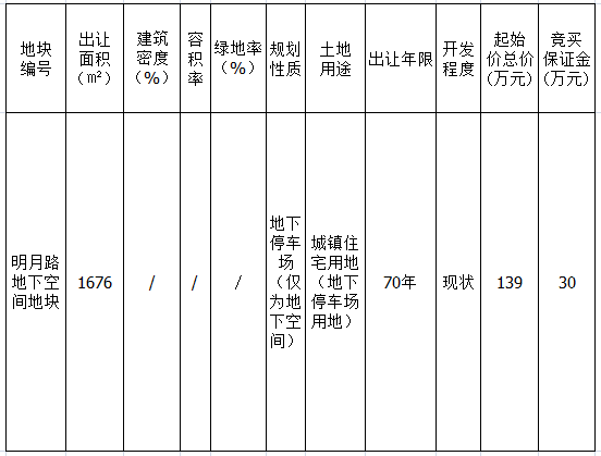 明月路地下空间地块出让公告