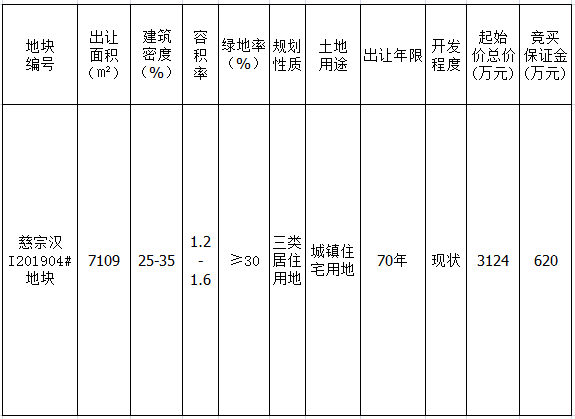 二、出让地块的规划指标、土地用途、出让年限、起始价总价及竞买保证金等如下:
