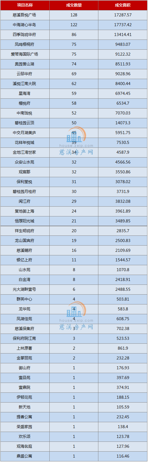 2019年5月慈溪商品房成交数据