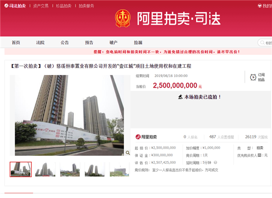 2019年6月15日上午10点,恒泰置业“壹江城”项目在淘宝司法拍卖平台因无人报名拍卖而流拍。小编认为此次流拍原因有以下几点:“壹江城”项目总价高达25亿,单单保证金就需要3亿元,金额较高;项目情况较为复杂,包括业主违约金在内的客诉问题以及工程款在内的债务问题等等因素。