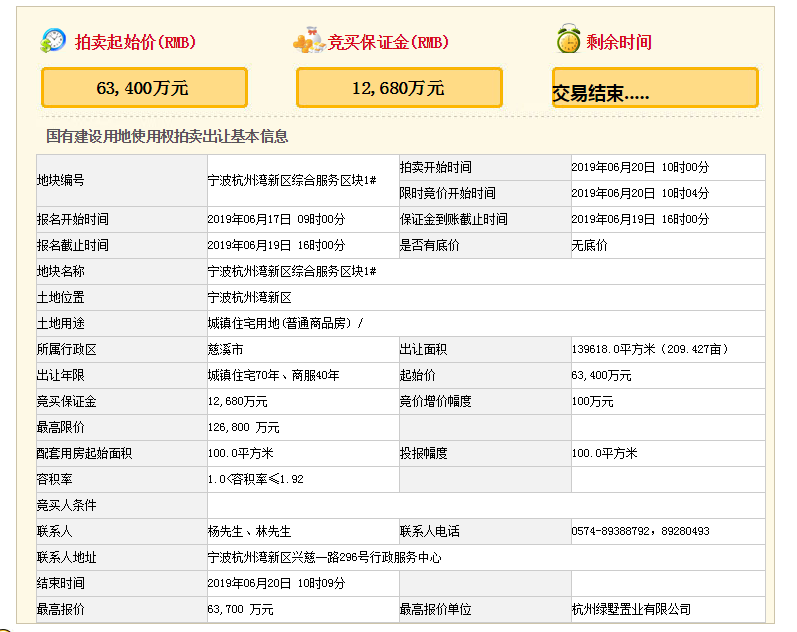 2019年6月20日上午10点,杭州湾2宗商住地地块开拍。