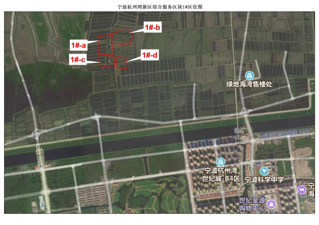 宁波杭州湾新区综合服务区块1#地块,东临规划景观湖绿化带,南临规划滨海七路,西临规划中兴一路,北临规划景观河绿化带。