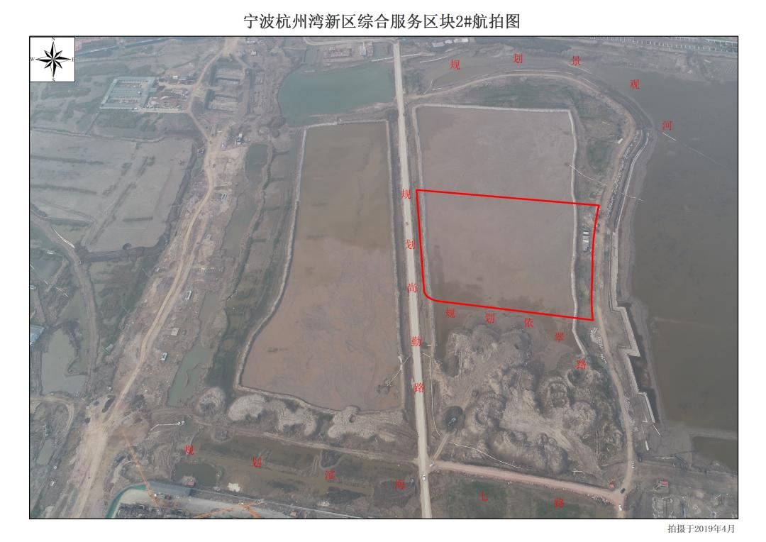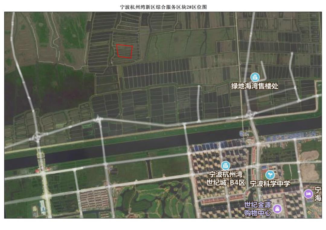宁波杭州湾新区综合服务区块2#地块,东临规划景观湖绿化带,南临规划依翠路,西临规划尚勤路,北邻宁波杭州湾新区综合服务区块1#-b。