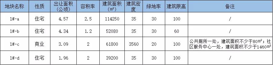 出让面积为139618㎡,容积率1.92,建筑面积为268066.56㎡,总起价63400万元,起始楼面价2365元/㎡,最高使用年限为商服40年,住宅70年。