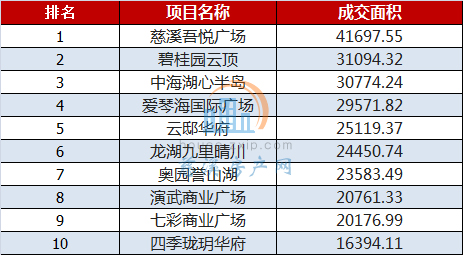 商品房成交面积TOP10