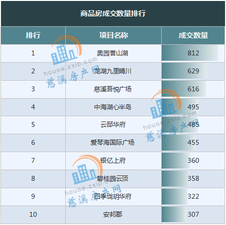 从成交排行榜上看,位于龙山镇的龙湖九里晴川以629套的成交量成功夺得2019商品住宅交易套排行的冠军桂冠,领跑慈溪楼市。紧接其后的则是位于明月湖板块的湖心半岛花苑,以493套的成交量居亚军位置。最后是悦华府以433套的成交量跻身前三甲,与龙湖九里晴川、湖心半岛花苑牢牢盘踞慈溪上半年商品住宅成交数量三甲的位置。