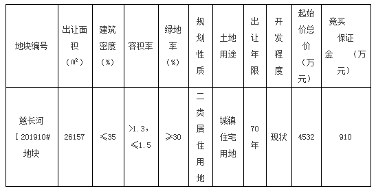 二、出让地块的规划指标、土地用途、出让年限、起始价总价及竞买保证金等如下: