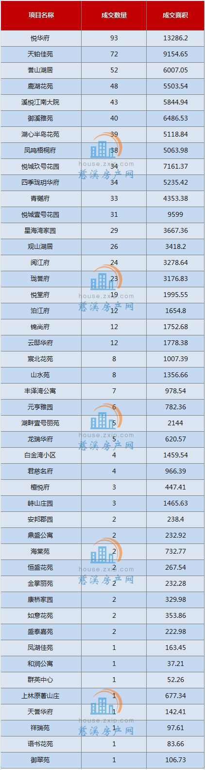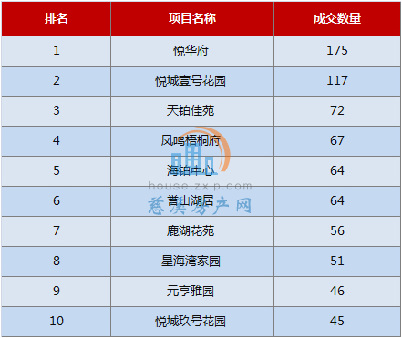 从成交排行榜上看,位于浒山街道的悦华府以93套的成交量夺得9月份慈溪商品住宅交易套数排行的冠军宝座,领跑慈溪楼市,而宗汉街道的天铂佳苑以72套的成交量居于亚军位置。紧接着是观海卫镇的誉山湖居,以52套住宅成交量跻身前三甲。