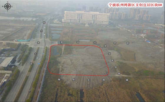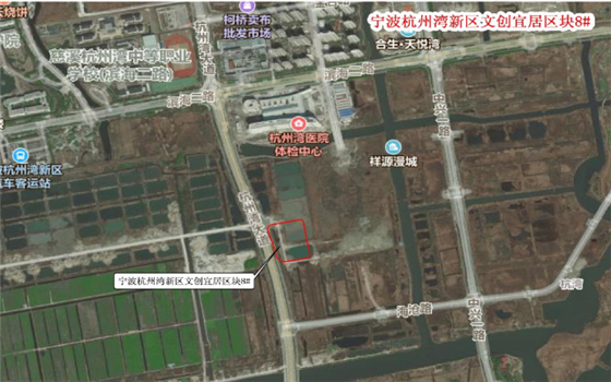 宁波杭州湾新区文创宜居区块8#地块用地范围:东临规划虚怀路,南临规划若瑜路,西临杭州湾大道。北临规划达智路。土地面积21609㎡,是城镇住宅、商服用地,容积率≤2.4,建筑密度≤50%,绿地率≥25%,建筑限高≤80m。拍卖起价15600万元,起始楼面价3008元/平。