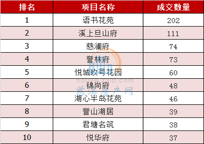 从成交排行榜上看,位于龙山镇的语书花苑以202套的成交量夺得12月份慈溪商品住宅交易套数排行的冠军宝座,领跑慈溪楼市,而古塘街道的溪上旦山府以111套的成交量居于亚军位置。紧接着是浒山街道的慈澜府,以74套住宅成交量跻身前三甲。