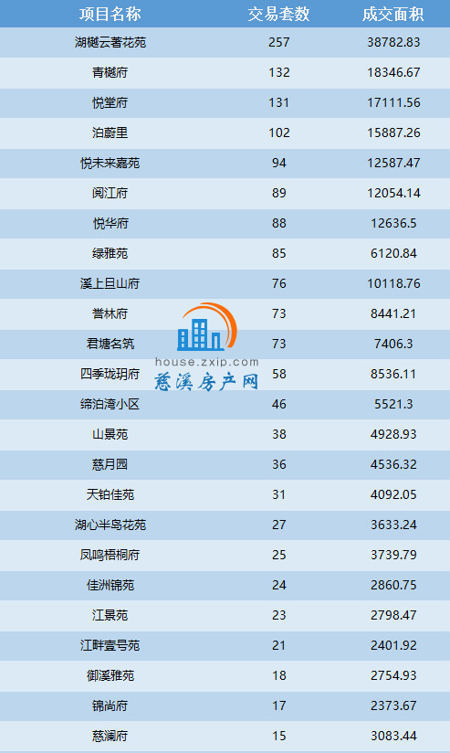 2020年5月慈溪商品房成交数据