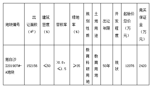 慈白沙I201907#-A地块拍卖出让公告