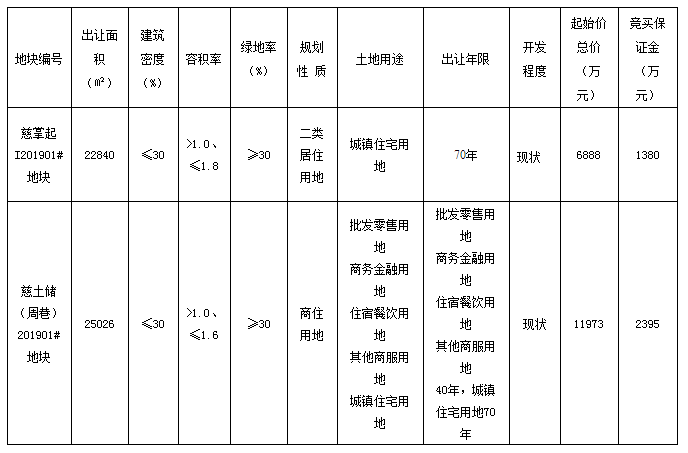 慈周巷、慈掌起两宗地块拍卖出让公告